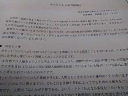 領域の教育課題では、予定していた講演会が中止となり、それに代わる資料の配布で研修を実施しました。