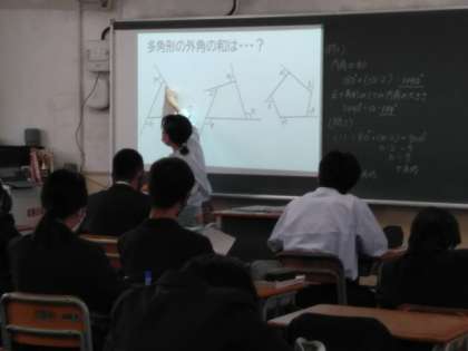 数学では、多角形の外角の和について学習しています。