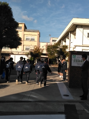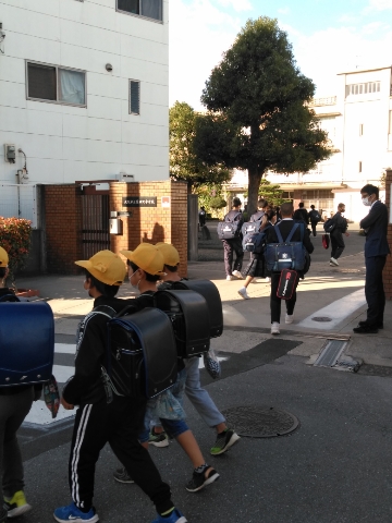 秋晴れのもと、児童さん、生徒たちが登校してきました。