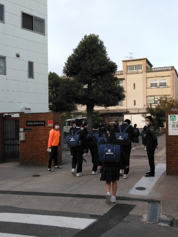 少し肌寒い中、児童さん、生徒たちが登校してきました。