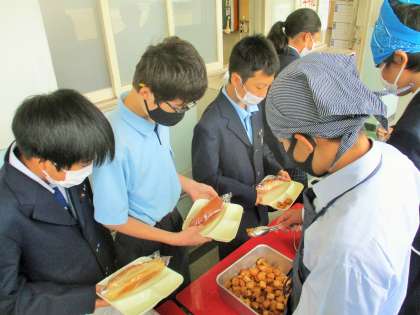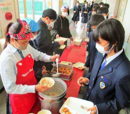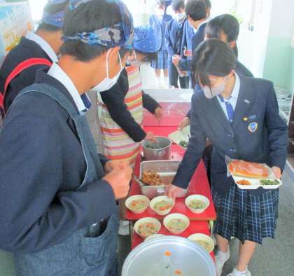 給食の配膳風景です。