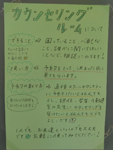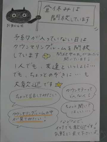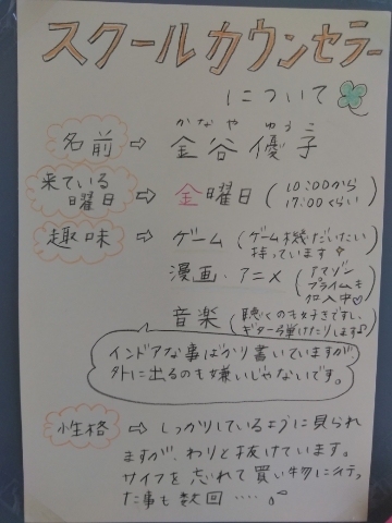 毎週金曜日に、カウンセラーの先生がお見えです。
