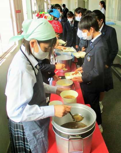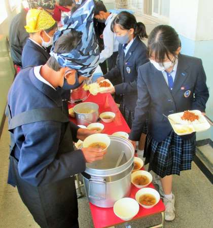 給食の配膳風景です。