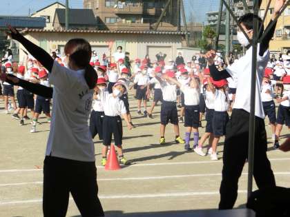秋晴れのもと、児童さんが元気いっぱいです。