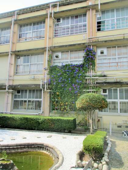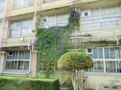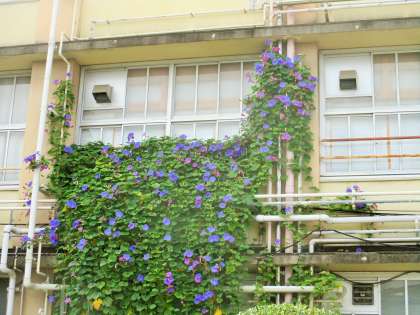 池の前 琉球朝顔 まだ花が咲いています。