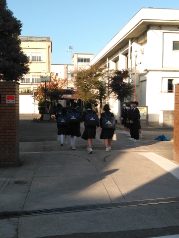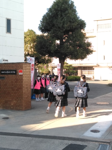 秋晴れの中、児童さん、生徒諸君が元気よく登校してきました。