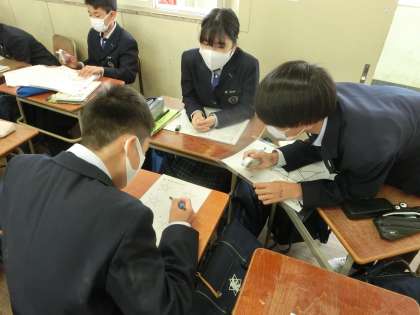 机を向かい合わせてグループとなって、定理を使い算出の考えを導き出します。
