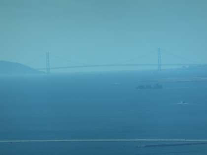 はるか遠く少しかすむ明石海峡大橋。