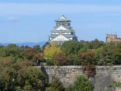 秋の色に染まり始める大阪城公園。