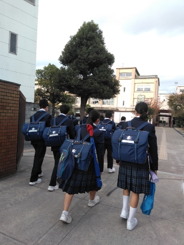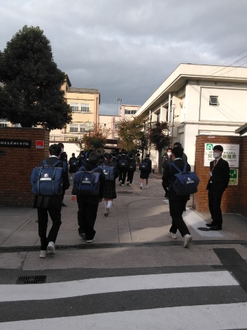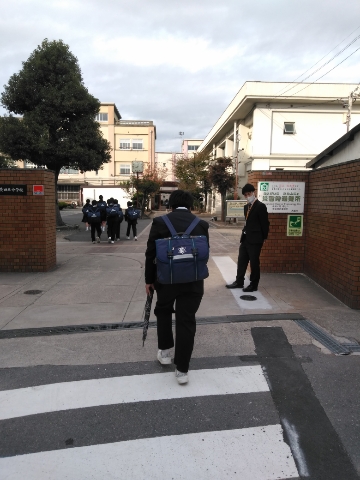 薄曇りの中、児童さん、生徒たちが元気に登校してきました。