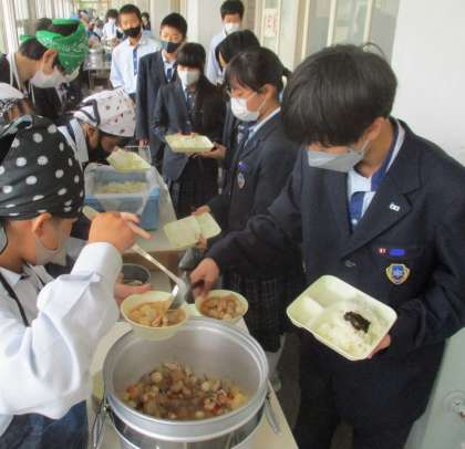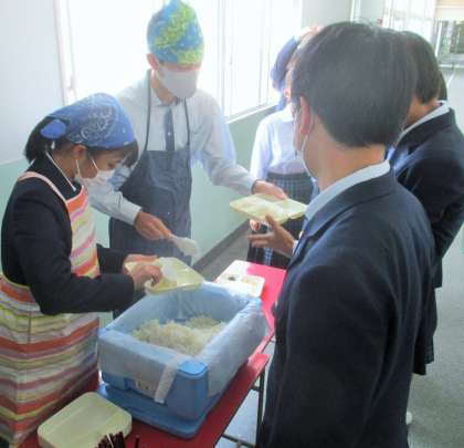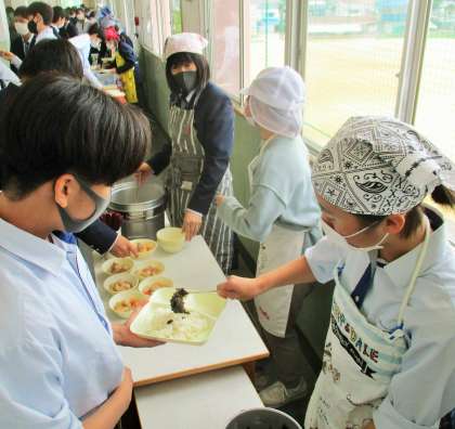 給食の配膳風景です。