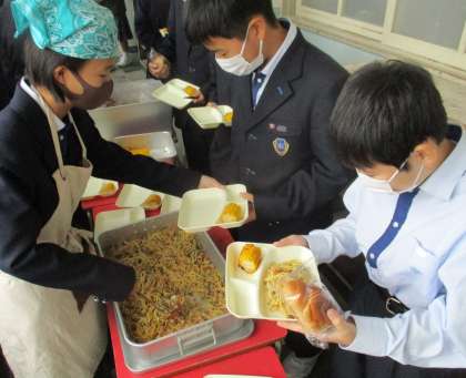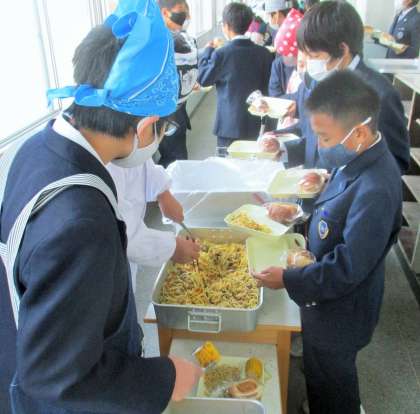 1年生 給食の配膳風景です。