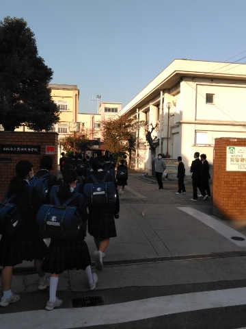 少し肌寒い中、児童さん、生徒たちが登校してきました。