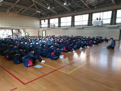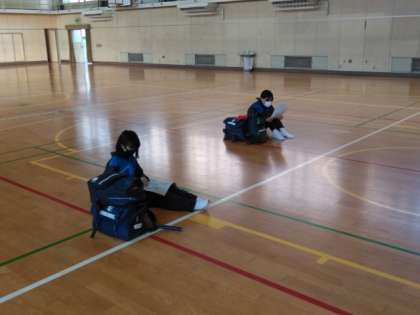 体育館に一年生が続々と集まり始めました。