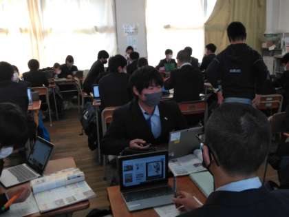 生徒たちは一人一台端末を活用しています。