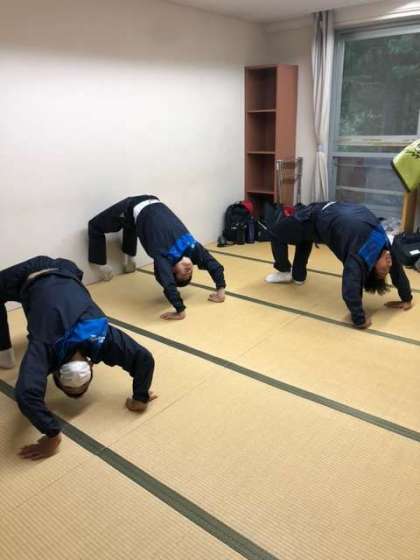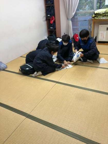 部屋の中で、ブリッジする班や予定を確認している班など過ごし方もいろいろです。