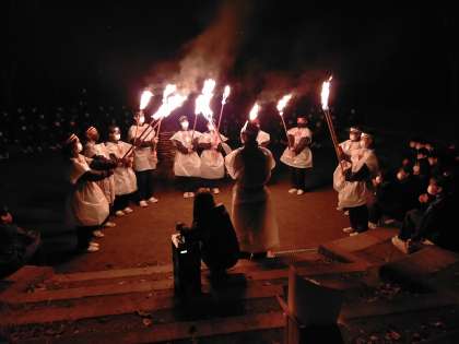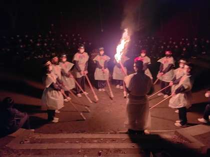 火の神からいただいた各組の色々な火で、キャンプファイアに点灯しました