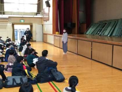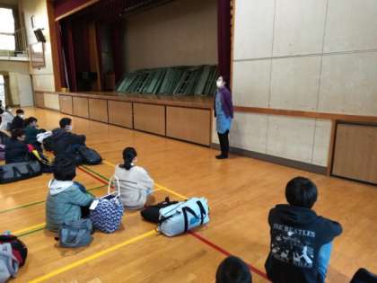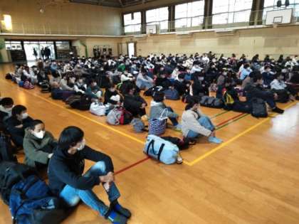 体育館での出発式。