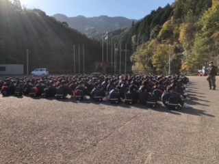野外炊飯の説明を受けています。