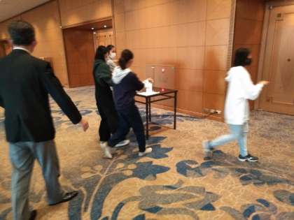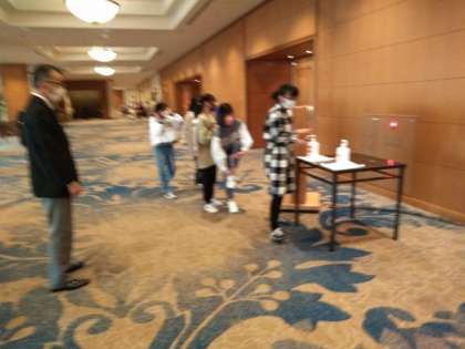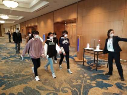 男子に続いて、女子も朝食会場へやってきました。
