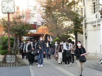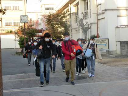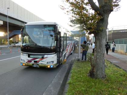 保護者のお見送りのある中、中央環状線からバスが出発します。