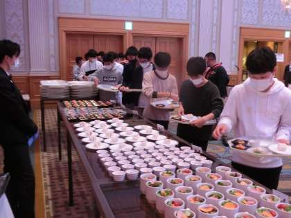 それぞれ取り分けてあるお皿を、一人ずついただくビュッフェスタイルでした。