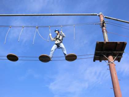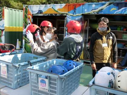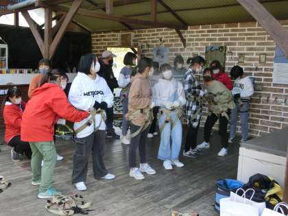 男子に続いて、女子もヘルメット、ベルトをつけて準備しています。