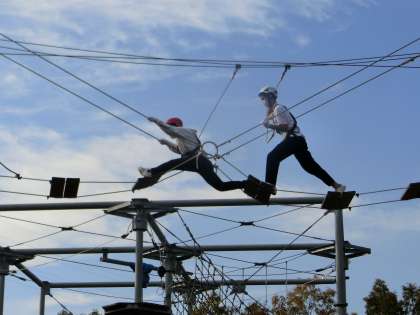 いっぺんに何人もロープや板に乗ると、揺れる揺れること。