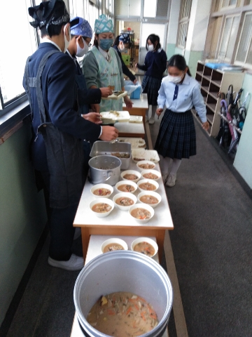 午前の授業が終了し、給食の時間となりました。