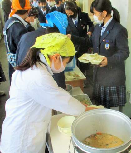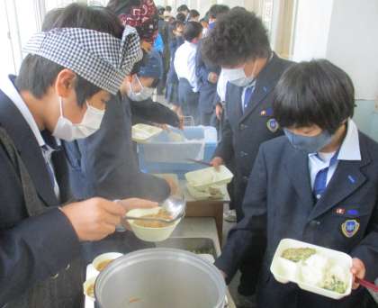1年生 給食の配膳風景です。