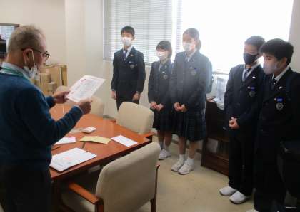 集まったお金を、鶴見区福祉協議会に納め、感謝状をいただきました。