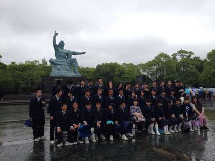 長崎平和公園、少し雨がふっていましたが学級写真を撮影しました。グラバー邸など市内散策の様子です。