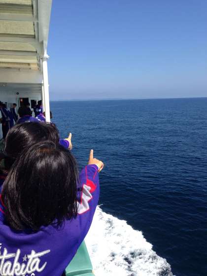 壱岐が見えてきました。少し肌寒いですが、晴れです。この後、バーベキュー、マリンスポーツを楽しみます。