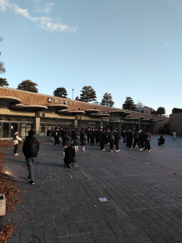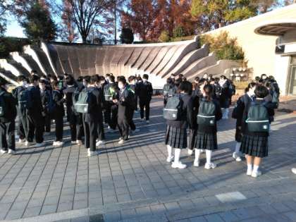 紅葉の美しい、大阪メトロ鶴見緑地駅前に集合しています。