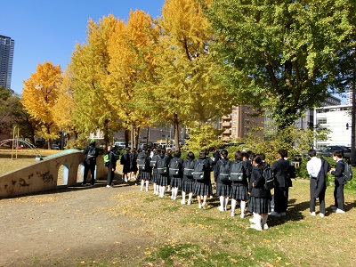 銀杏並木のキレイな野崎公園で待っていると・・・。