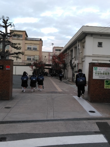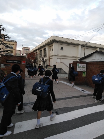 少し肌寒いですが、児童さん、生徒たちが元気に登校してきました。
