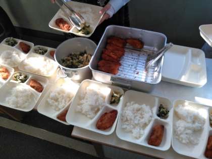 午前の授業が終わり、給食の時間となりました。