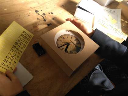 文字盤に数字を貼り付けています。