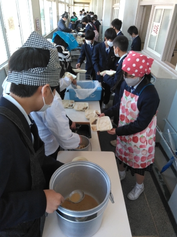 授業が終了し、給食の時間となりました。