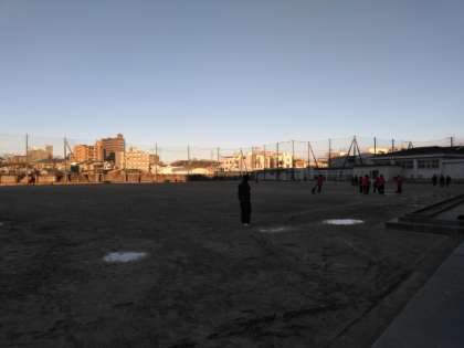 冷たい風が吹き抜ける中、サッカー部が試合の準備を始めています。