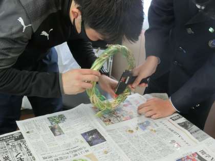 クリスマスリースを作成していきました。