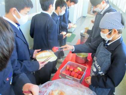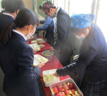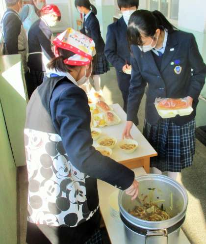 給食の配膳風景です。