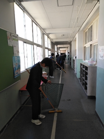 学年集会の後、みんなで学校をきれいに掃除しました。