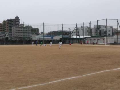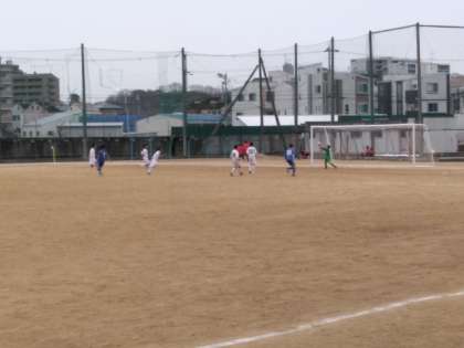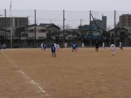 時折雪の舞う寒風の中、サッカー部が試合を行っています。