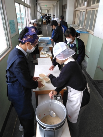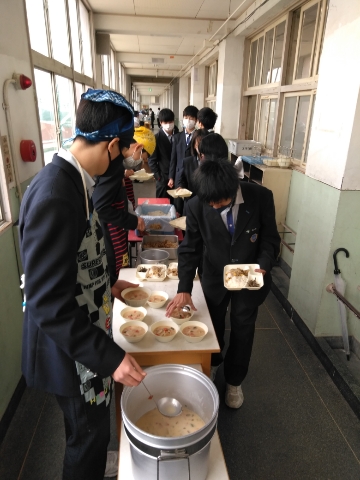年の初め。本日は、「白みその雑煮」「レンコンのちらし寿司」「ごまめ」のお正月メニューです。