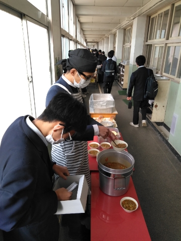 今日のメニューは、「ミートボールと野菜のカレー煮」「キャベツとツナのソテー」「りんご」でした。