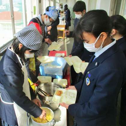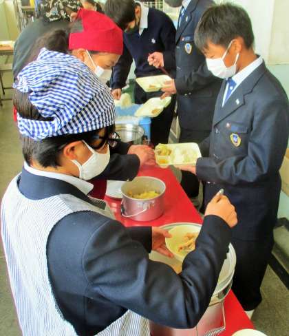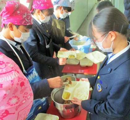 給食の配膳風景です。