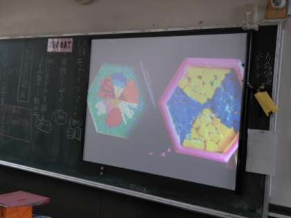 小さく割ったタイルを、考案した図柄に埋めていく作業です。