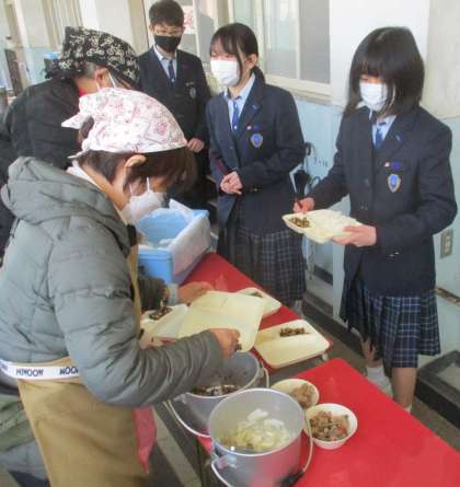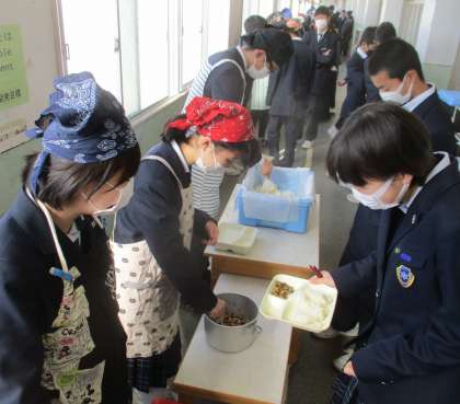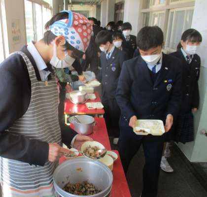 給食の配膳風景です。