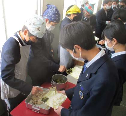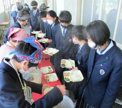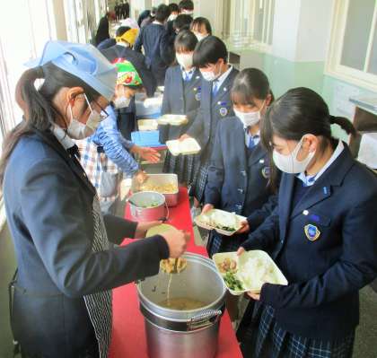 給食の配膳風景です。